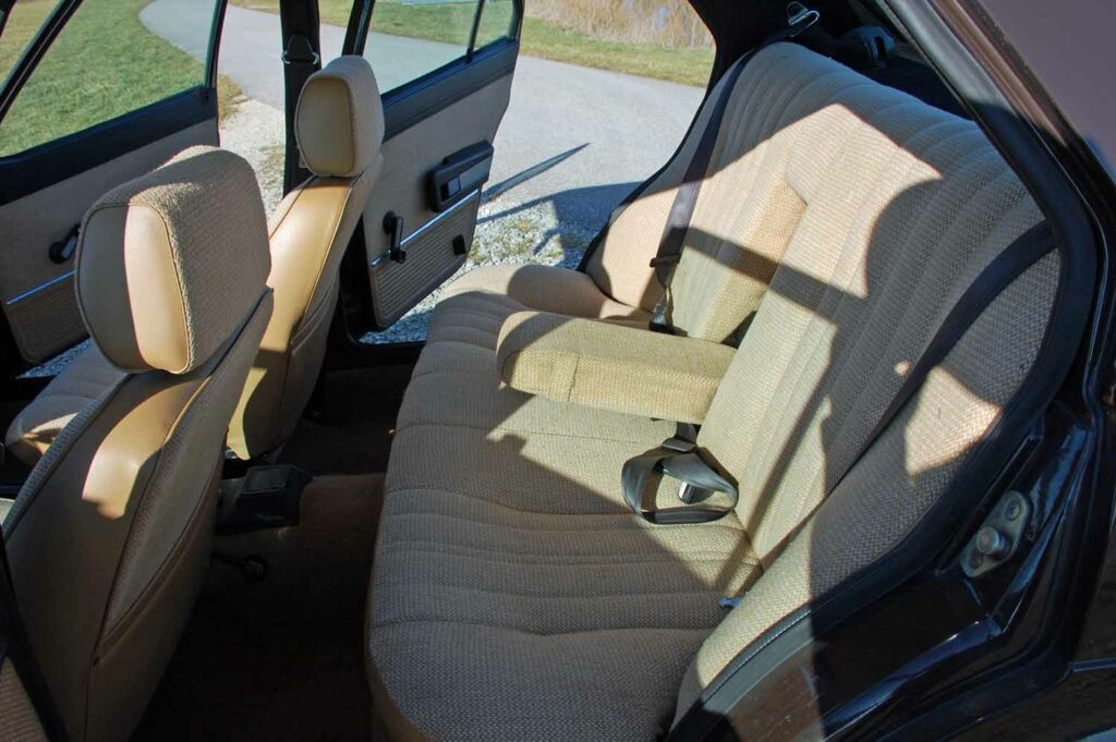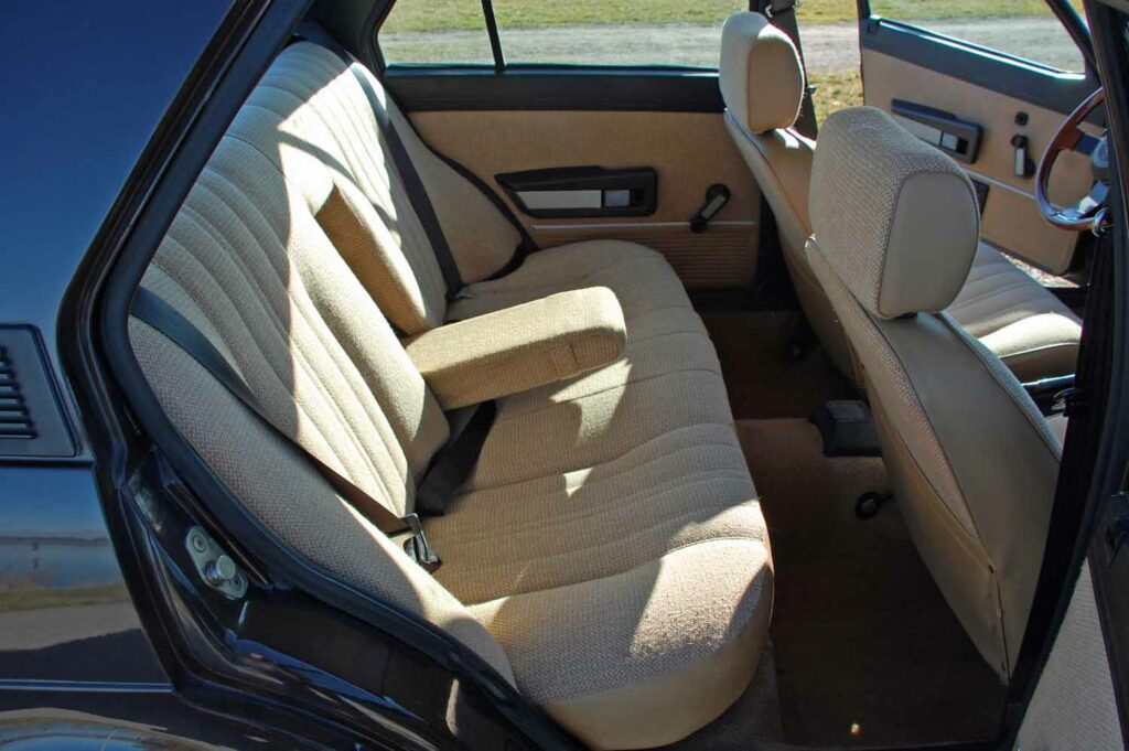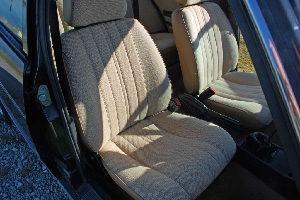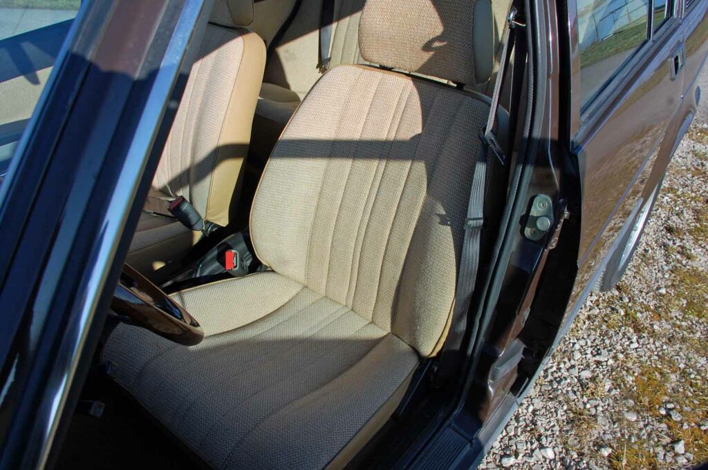 Besonders schön ist die Innenausstattung noch erhalten. Keine Risse im Armaturenbrett und auch der Innenhimmel hängt nicht durch. Die Instrumente funktionieren wie sie sollen. Wichtig für Familien: Es sind auch hinten Automatik Sicherheitsgurte eingebaut.