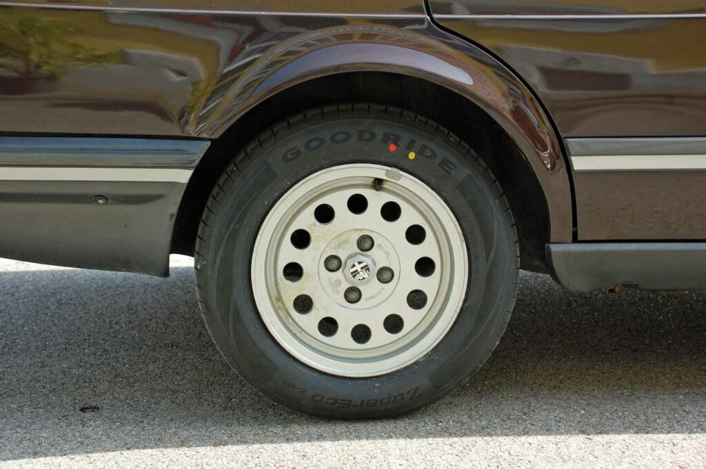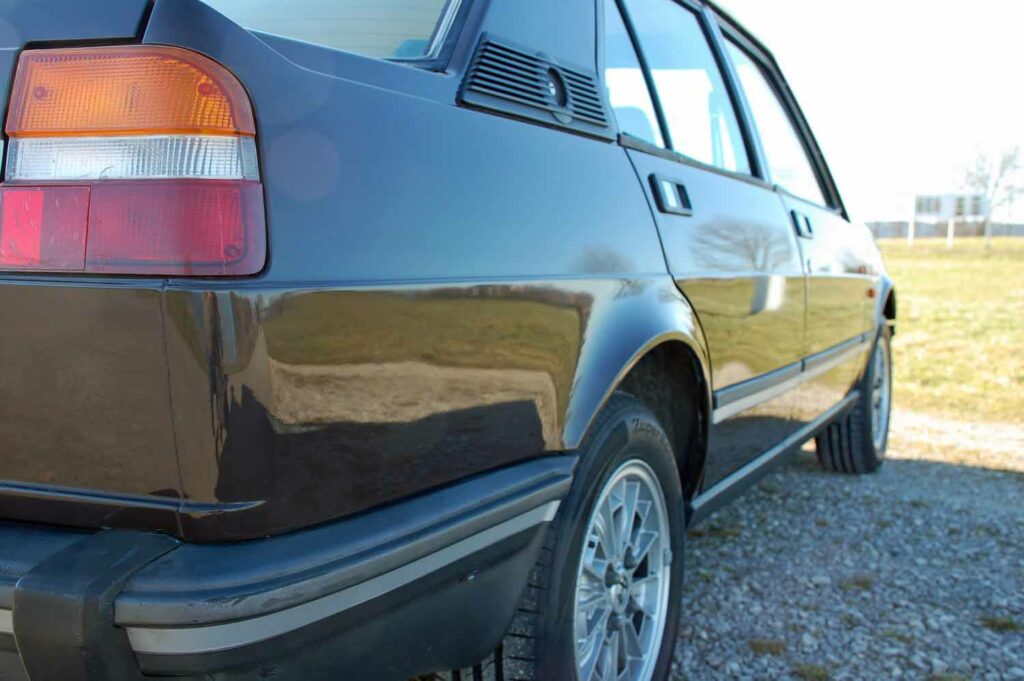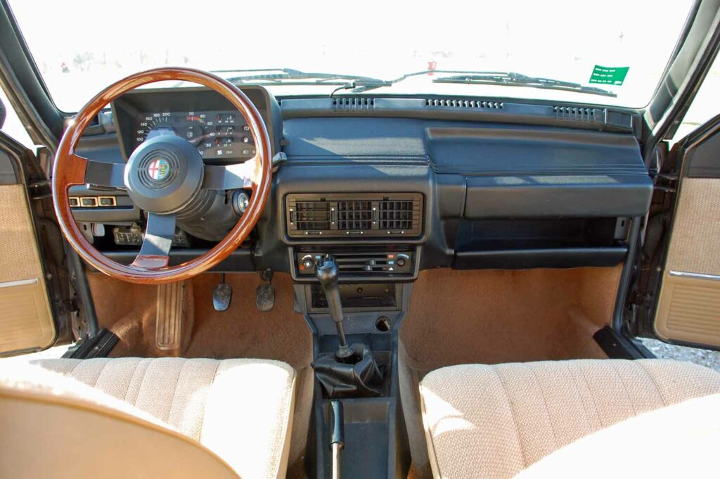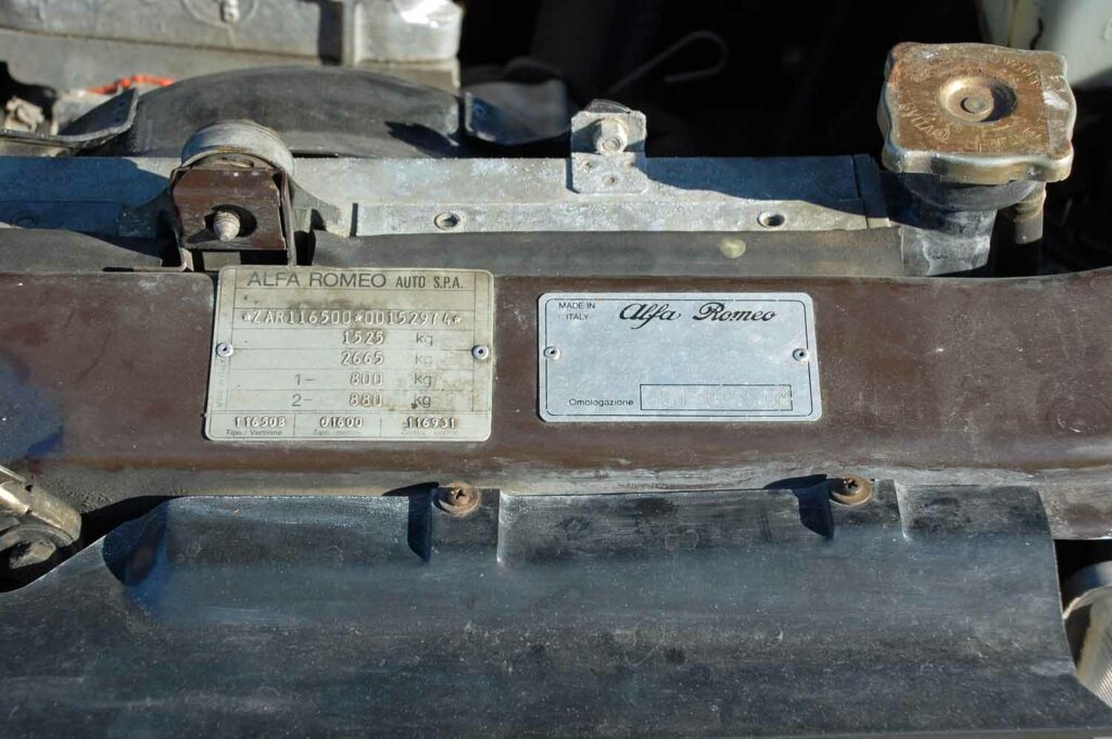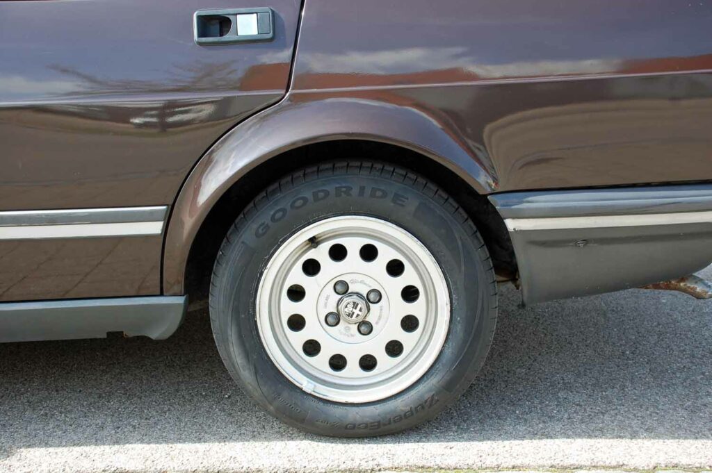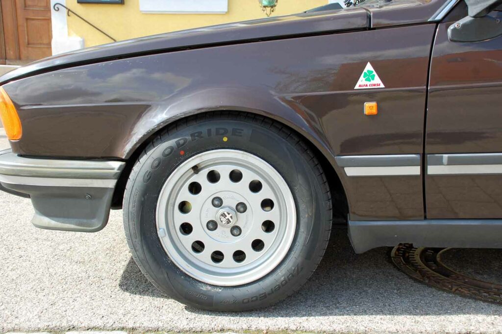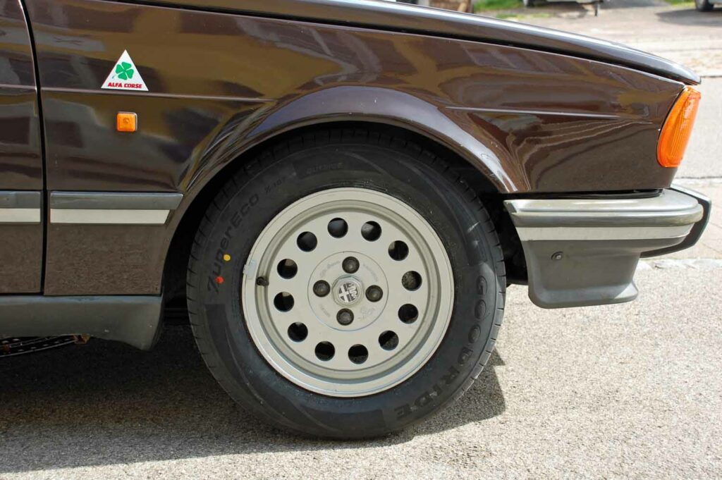 Die 6×14 Campagnolo Felgen sind natürlich eingetragen. Sie waren original auf den frühen Alfettas verbaut, vorzugsweise bei den US-Modellen.