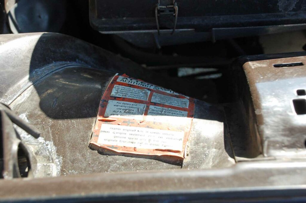 Besonders freute uns, dass alle Plaketten und Aufkleber noch im Motorraum vorhanden sind. Die Italienischen Mechaniker haben auch den Kupplungsnehmerzylinder erneuert, da waren wir froh das sie uns diese fummelige Arbeit schon abgenommen haben.