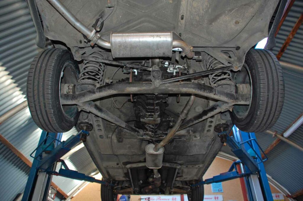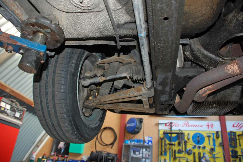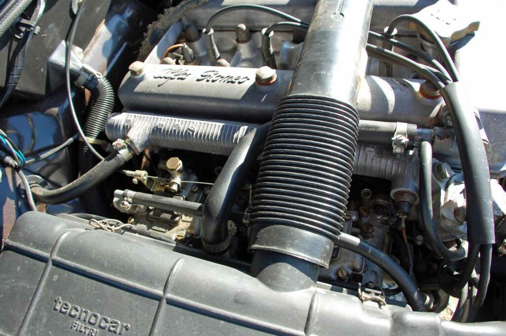 Wir haben einiges an der Komplexen Technik des Klassikers gerichtet. So sind alle vier Bremssättel neu und auch alle Bremsschläuche wurden in diesem Zug erneuert. Die Bremsklötze wurden an beiden Achsen gewechselt. Vorne bekam der Alfa zusätzlich noch neue Bremsscheiben. Alle Reifen sind erneuert, außerdem bekommt er vor Auslieferung an den Käufer noch einen frischen Ölwechsel. Das Getriebeöl haben wir schon erneuert. In Italien haben die Mechaniker sich schon den Vergasern angenommen, der Motor läuft erstklassig! Das Getriebe benötigt beim Schalten etwas Gefühl, da es hinten ist sind die Schaltwege dadurch recht lang sind. Der Alfa kommt aus Italien, wir haben schon alle TüV Untersuchungen durchführen lassen und auch die H-Abnahme war kein Problem.
