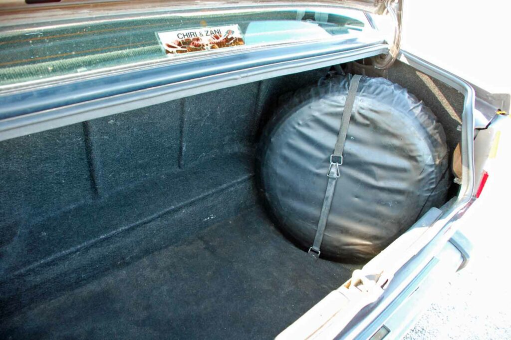 Im Kofferraum ist noch das Originale Ersatzrad vorhanden mit der Kunststoffabdeckung.