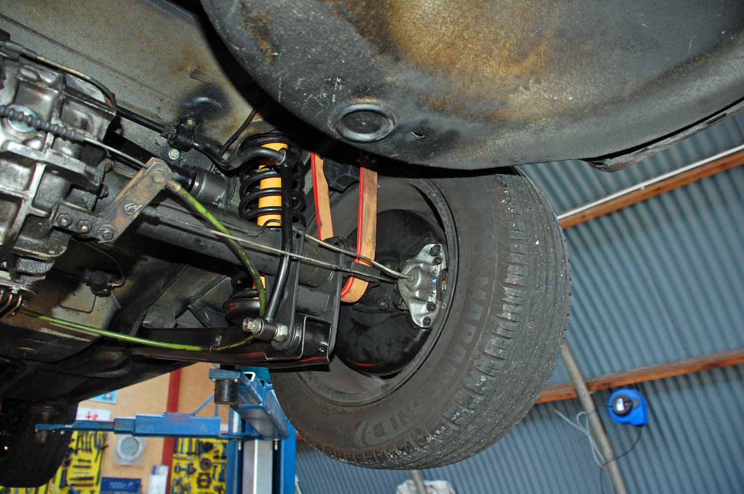 Auch die Hinterachse ist ohne Befund, weder Ölundichtigkeiten noch überdurchschnittliches Spiel ist festzustellen.
