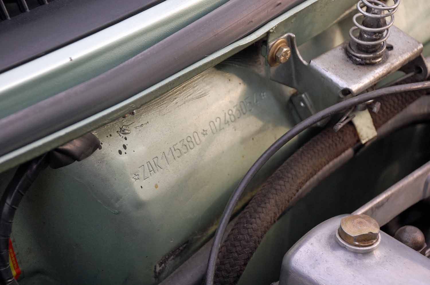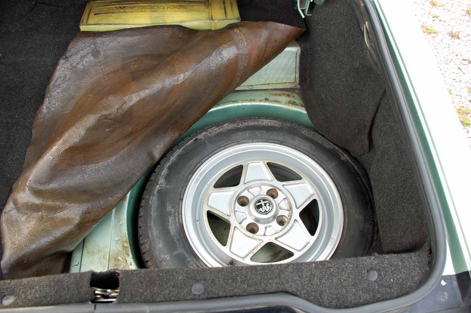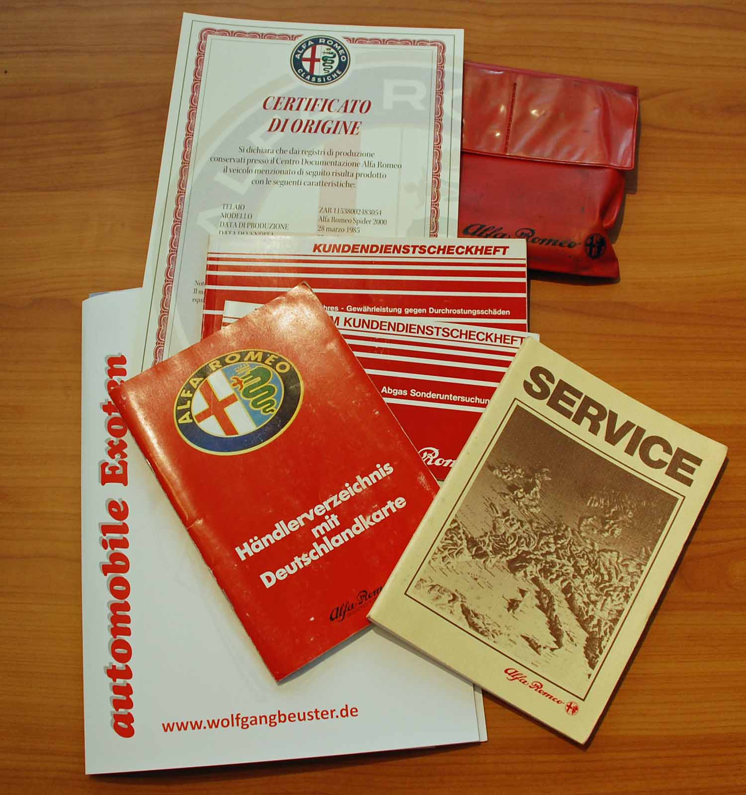 Auch die Felgen unseres Exemplars sind von Zender in der Größe 7x15Zoll. In der originalen Farbe Türkis Metallic macht er in Verbindung mit den polierten Felgen einen sehr edlen Eindruck. Überhaupt wurde an diesem Spider nicht gespart. Das originale Holzlenkrad ist genauso noch vorbaut wie die schwarzen Kunstledersitze. Alles nachvollziehbar durch das von Alfa Romeo erstellte Originalitätszertifikat. Gebaut worden ist dieser Alfa am 28 März 1985, er stand dann bis April 1986 bei einem deutschen Vertragshändler zum Verkauf. Unser Spider hatte Glück, zeit seines Autolebens wurde er noch nie im Winter auf salzigen Straßen bewegt.