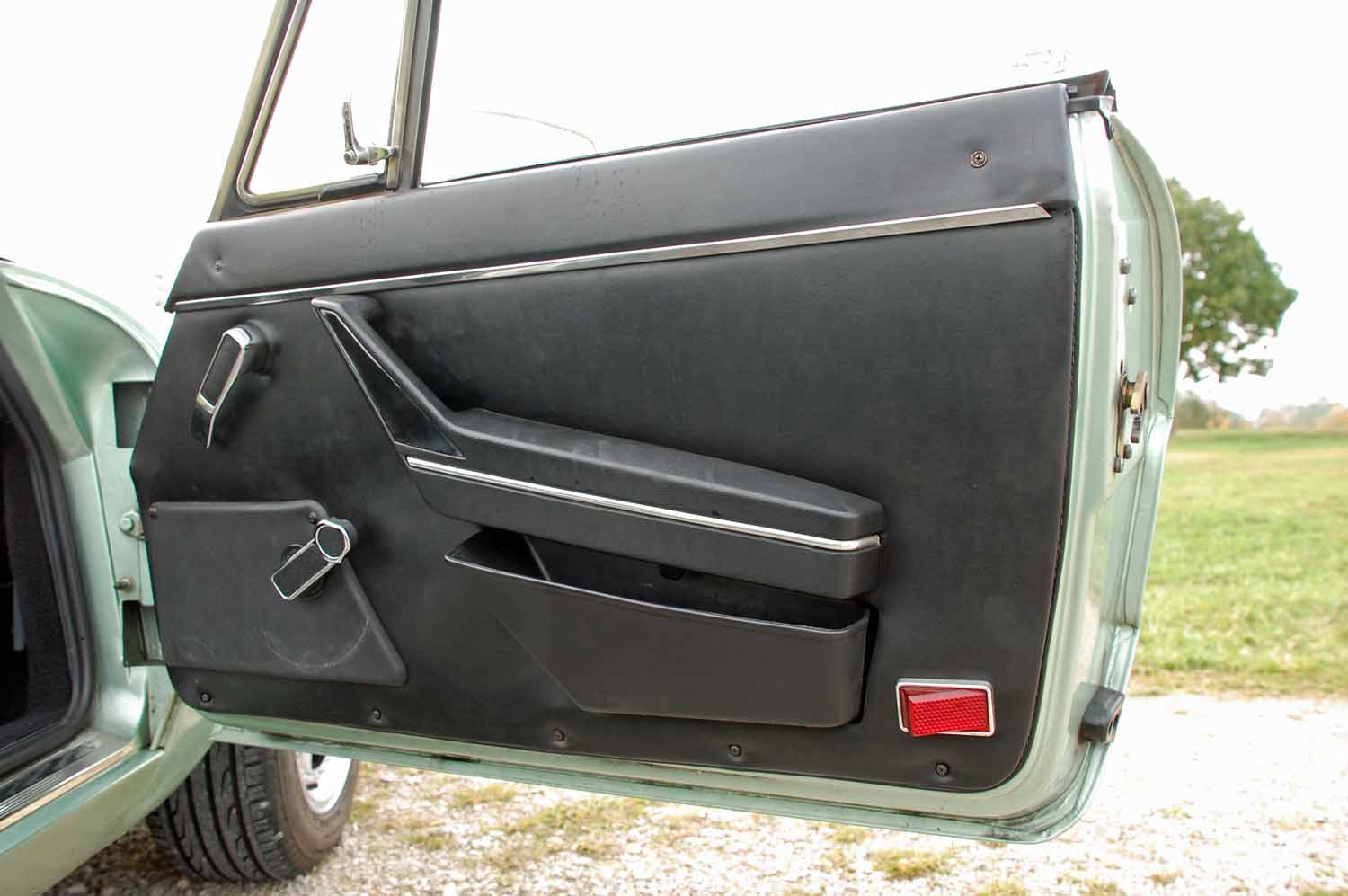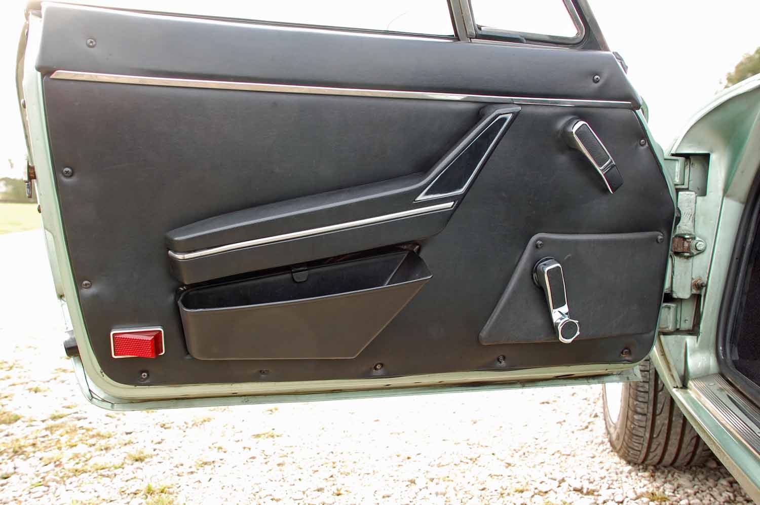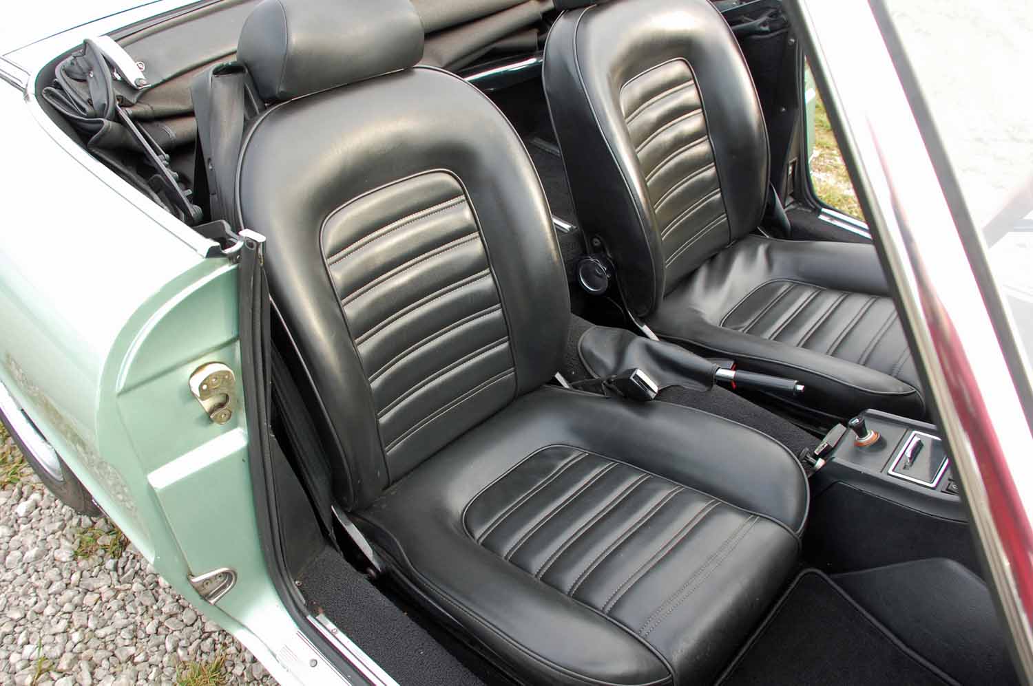 Die schwarze Ausstattung ist noch im top Zustand. Es waren einmal elektrische Fensterheber montiert, dass gefiel uns nicht, diese nachträglichen Zubehör Heber machen meist Ärger, so auch bei unserem Spider. Wir haben sie zurück gebaut und jetzt wieder mit normalen Kurbeln versehen. Die Schalter sind noch in der Mittelkonsole ohne Funktion, wir wollten keine hässlichen Löcher lassen.