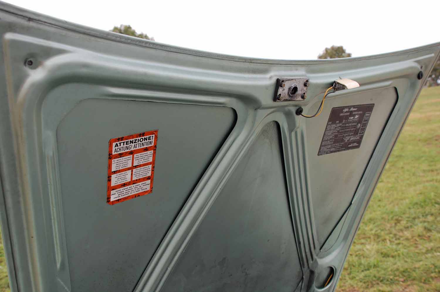 Wir haben schon viele Alfa Spider gehabt, aber in dieser Karosserie-Qualität sind sie definitiv selten zu finden. Alle Sicken am Schweller sind vorhanden und unberührt. Kein einziges nachträglich eingeschweißtes Blech ist zu finden. Am Unterboden ist weder Rost noch irgendwelche Falten von falschen aufbock Versuchen zu finden. Auch das Frontblech hatte noch keinen Kontakt mit irgendwelchen überhohen Bordsteinen. An manchen Stellen wurde schon etwas nachlackiert, solche Stellen bleiben wohl nach fast 40 Jahren im Straßenverkehr nicht aus.