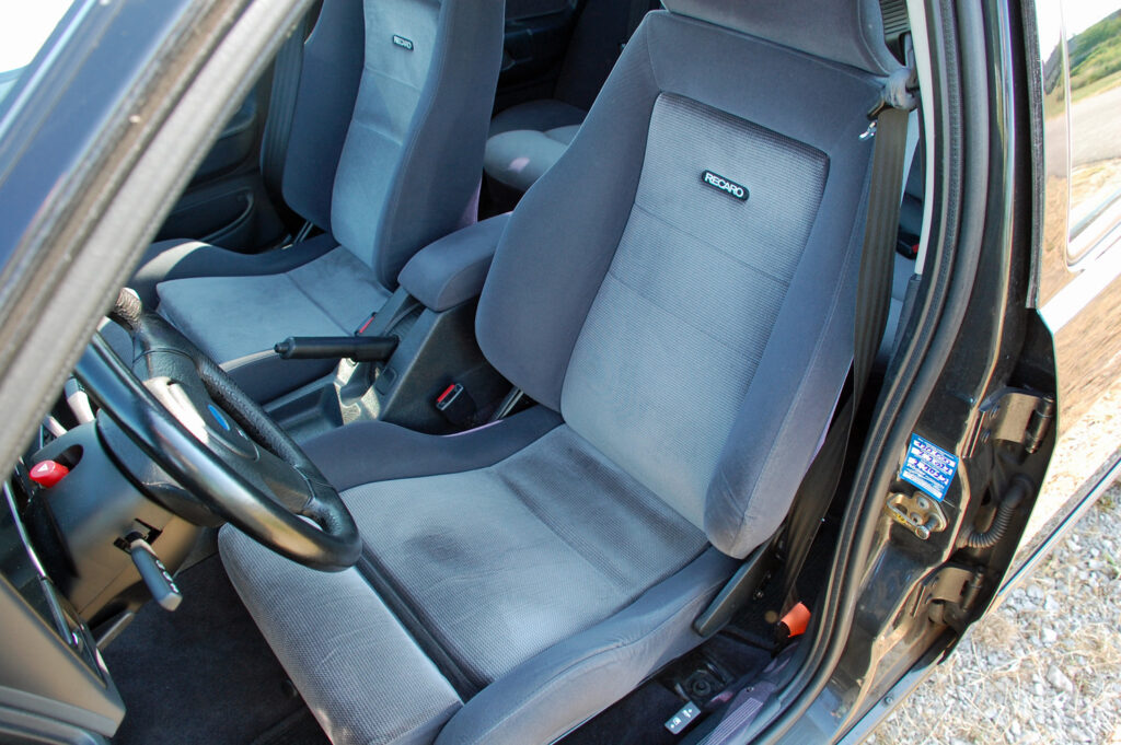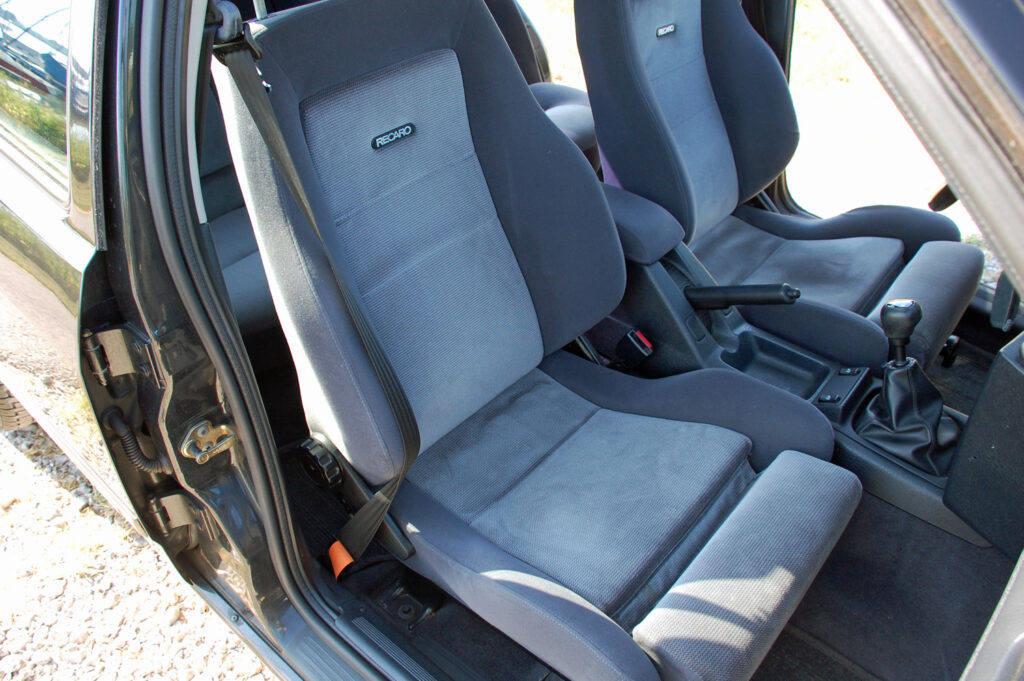 Die Serienmäßigen Recaro Sitze sind nicht durchgesessen und sogar die originalen Polster mit Anleitung als Lordosenstütze sind noch dabei.