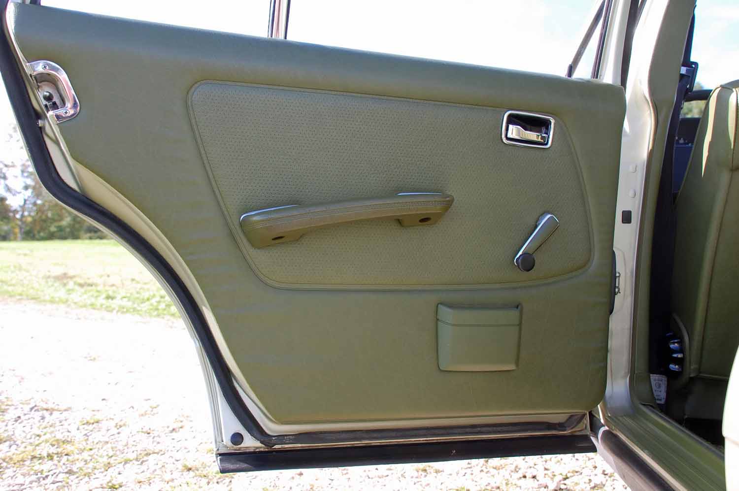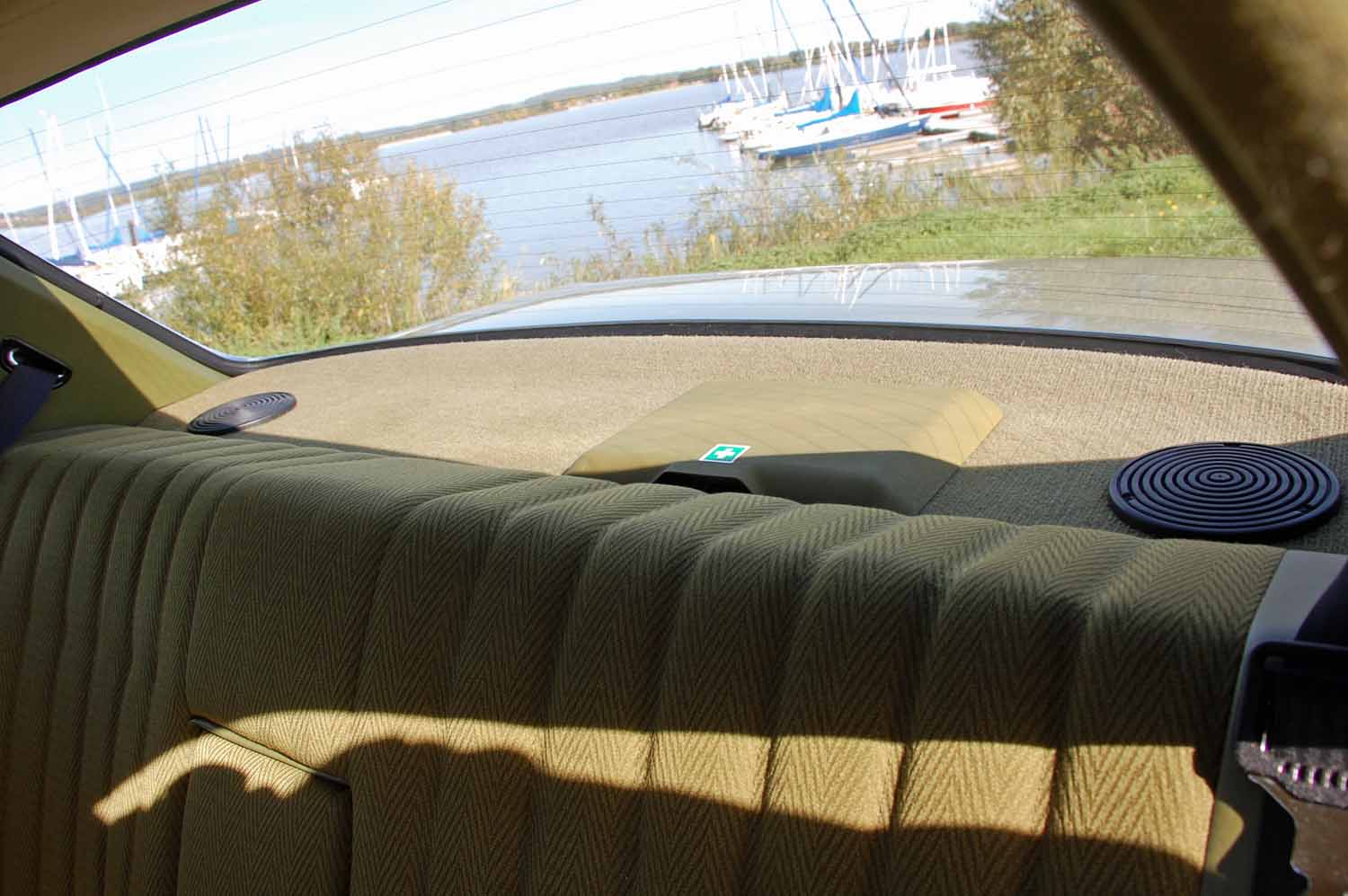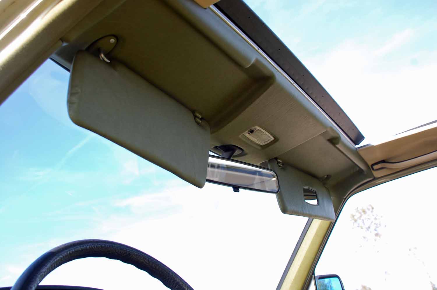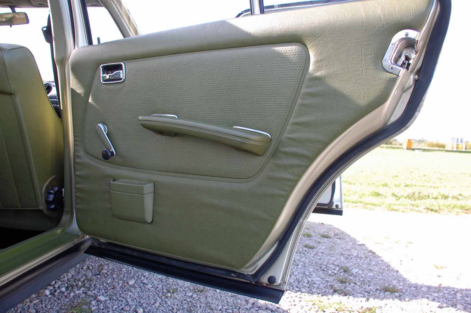Ein ganz besonders schönes Highlight ist die Innenausstattung. Ich konnte keinerlei Beschädigungen finden. Weder aufgescheuerte Sitze noch ein gerissenes Armaturenbrett. Der Blaupunkt Radio funktioniert genau so gut wie das elektrische Schiebedach. Nicht einmal die Sonnenblenden sind verformt und die Hutablage ist euch nicht ausgeblichen. Der Mercedes muß wohl zeitlebens in der Garage gestanden haben.