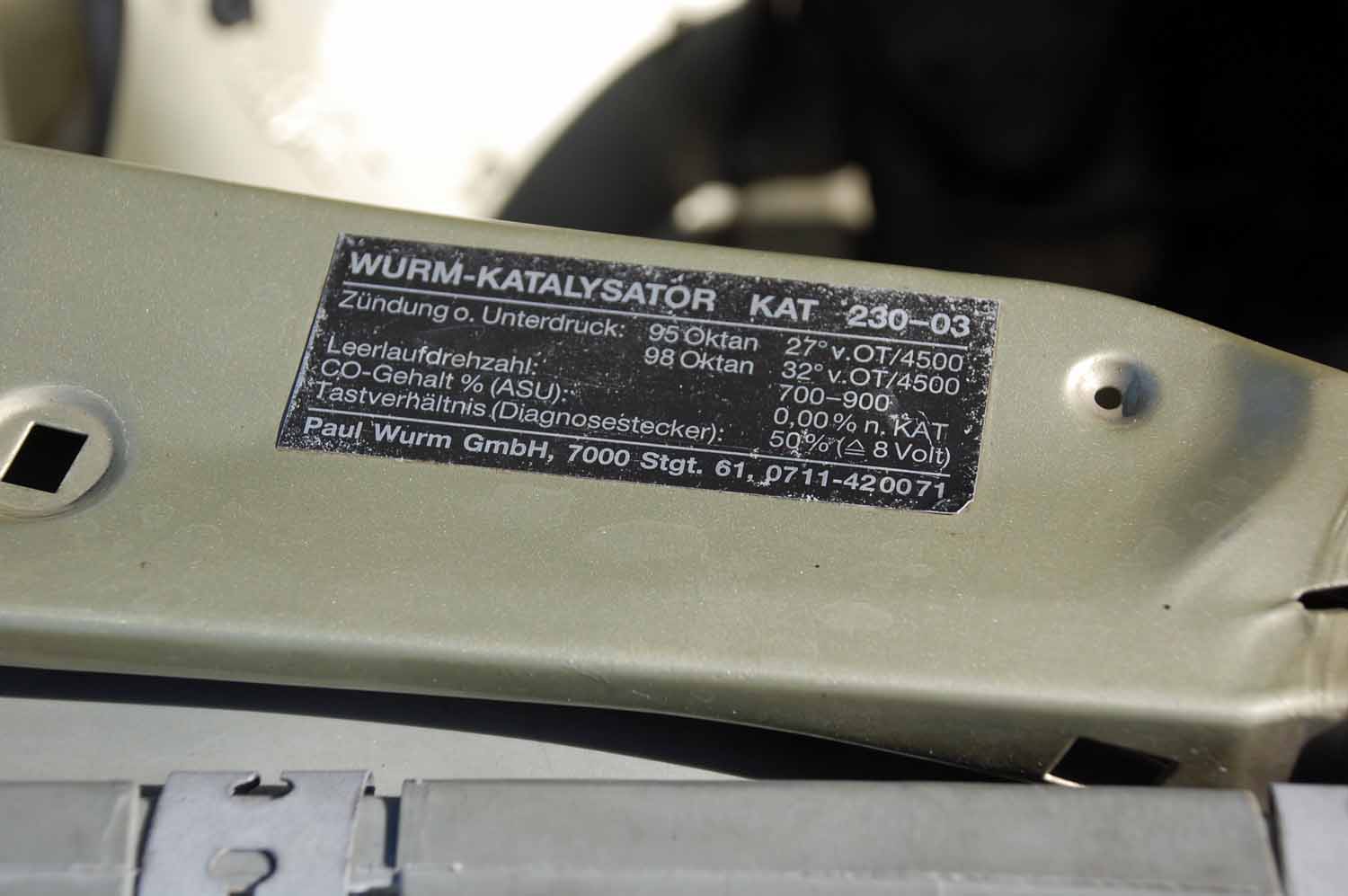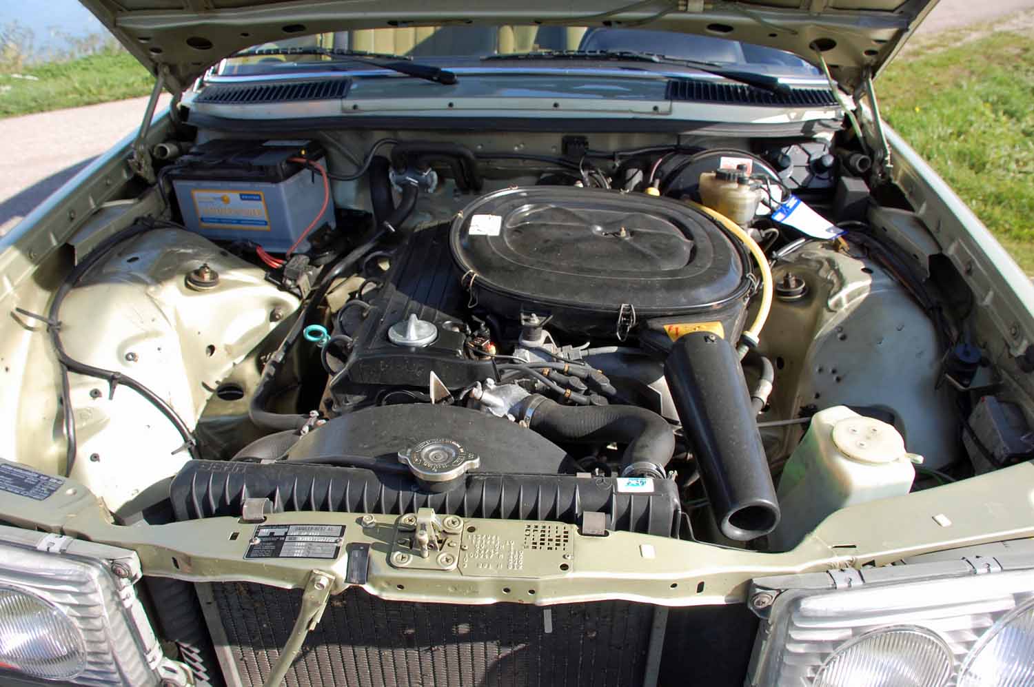 Wie bereits erwähnt ist der 2,3Liter Motor für den W123 die beste und wirtschaftlichste Wahl. In Verbindung mit dem perfekt schaltenden 4-Gang Getriebe können durchaus Verbräuche unter 10 Liter erreicht werden. Die Aggregate unseres 230E sind trocken, machen keine besorgniserregenden Geräusche und sind wartungstechnisch auf dem aktuellen Stand. Vor ca. 30 Jahren wurde ein geregelter Wurm Katalysator eingebaut, somit ist der Oldtimer auch noch umweltschonend unterwegs.