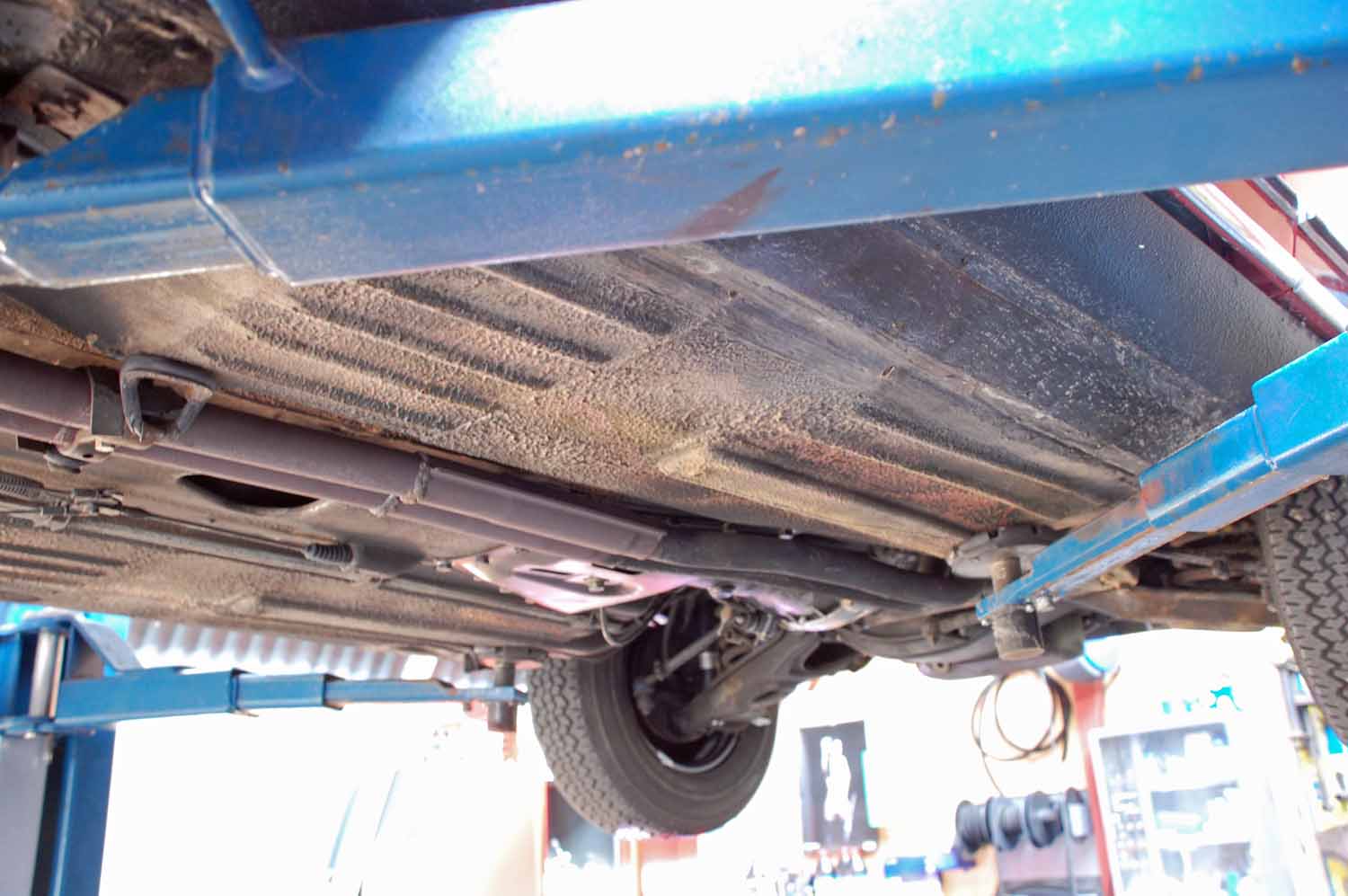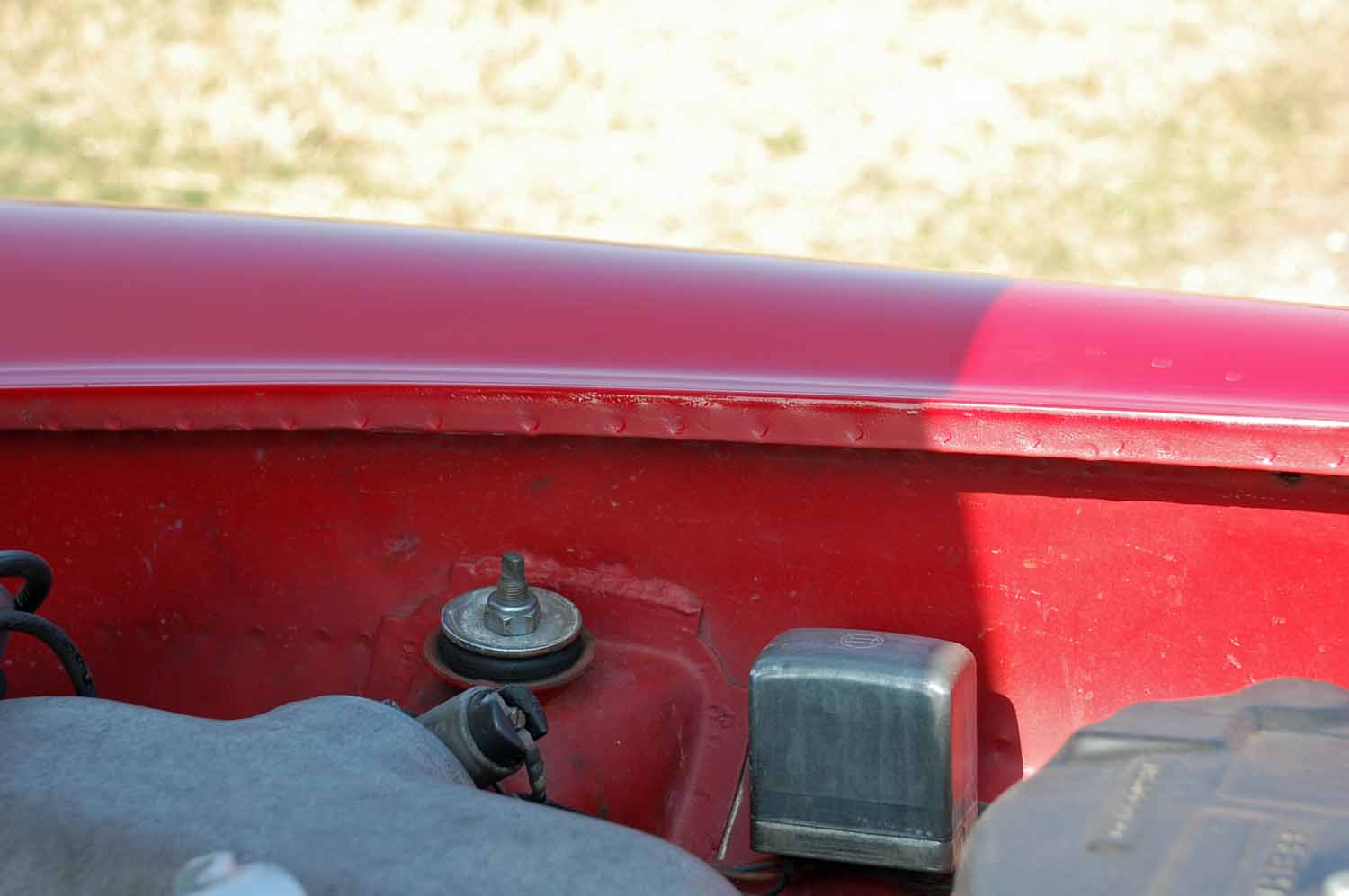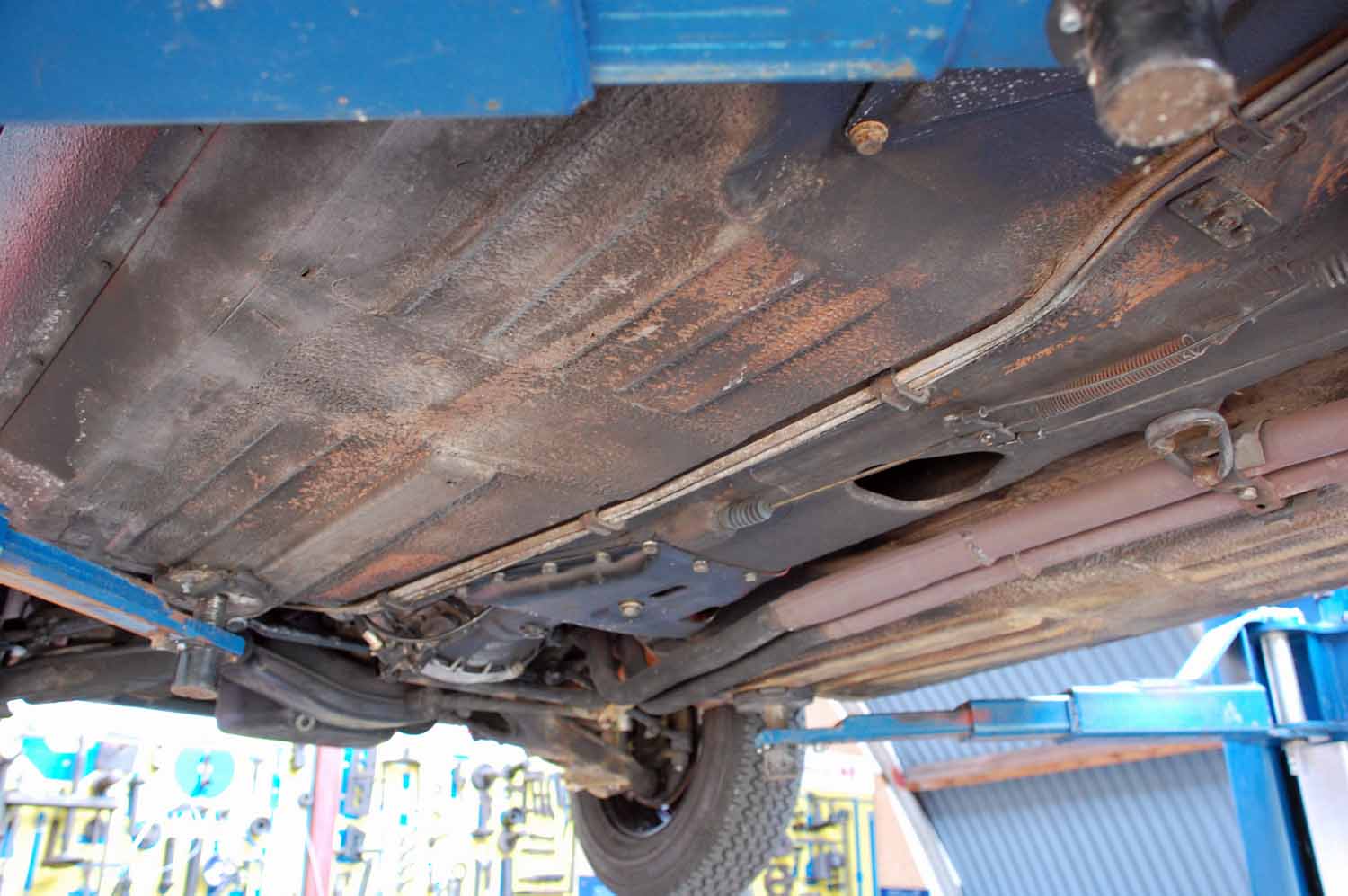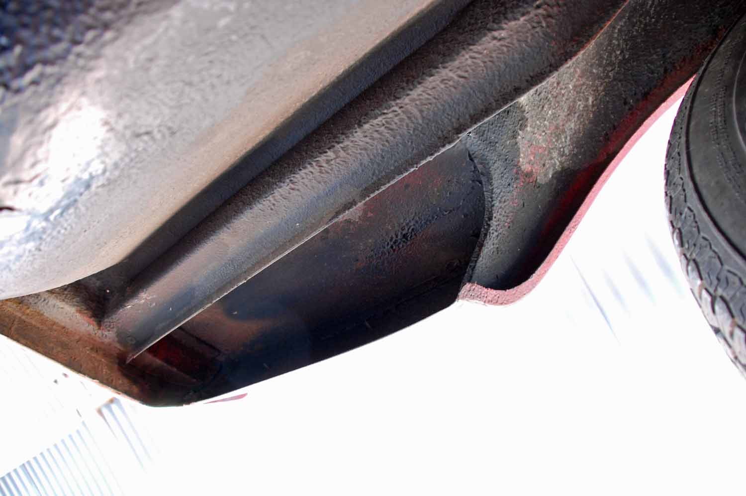 Eigentlich ist der Unterboden ungeschweißt. Leider haben sogenannte „Spezialisten“ den SL einmal unsachgemäß aufgebockt, diese vier Stellen sind dann im laufe der Zeit etwas vergammelt, so dass nun etwas Handlungsbedarf bestand. Die Schweißpunkte am rechten Kotflügel sind noch schön Original sichtbar, links haben die Lackierer in USA leider die Punkte verschwinden lassen. Das gleiche Schicksal haben die berühmten vorderen kleinen Nasen oberhalb der Scheinwerfer erfahren, die sind der Lackvorbereitung seiner Zeit zum Opfer gefallen. Die Seitenteile am Heck sind noch die ersten, auch im Kofferraum sind keine Knitterstellen eines Unfalls zu finden. Der Unterboden wurde von uns nicht geschminkt, alles ist so wie es Original war, ohne nachträglich aufgetragenen Unterbodenschutz.