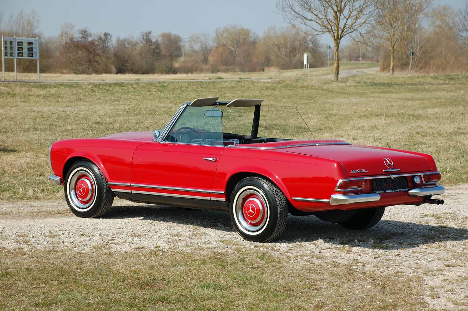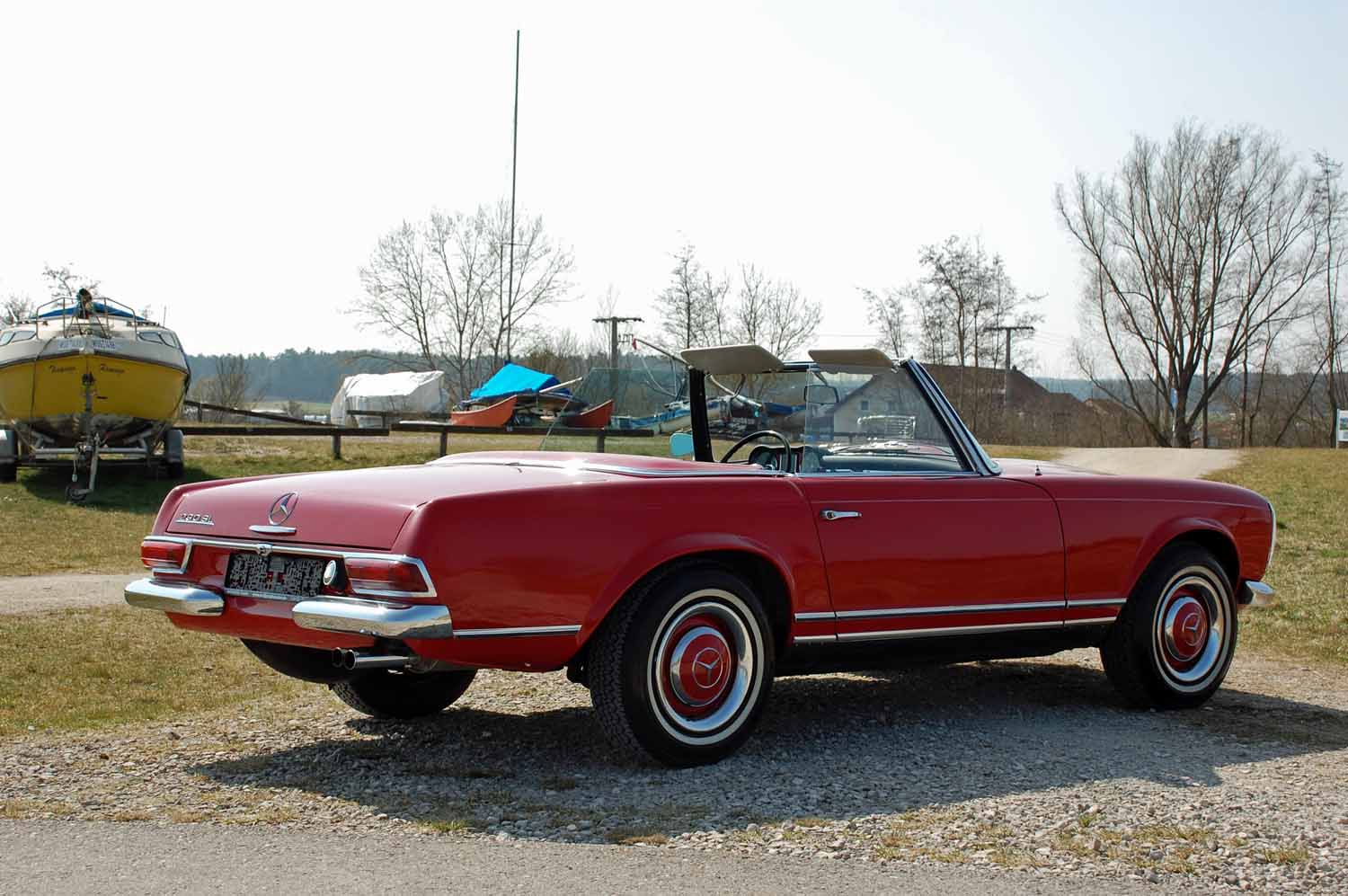 Der Mercedes Benz 230SL W113 war der Nachfolger des 190SL und 300SL. Der Reihensechszylinder mit Graugussblock sollte den Spagat zwischen dem unkultiviertem Vierzylinder des 190SL und dem Rennmotor aus Alu vom 300SL schaffen.