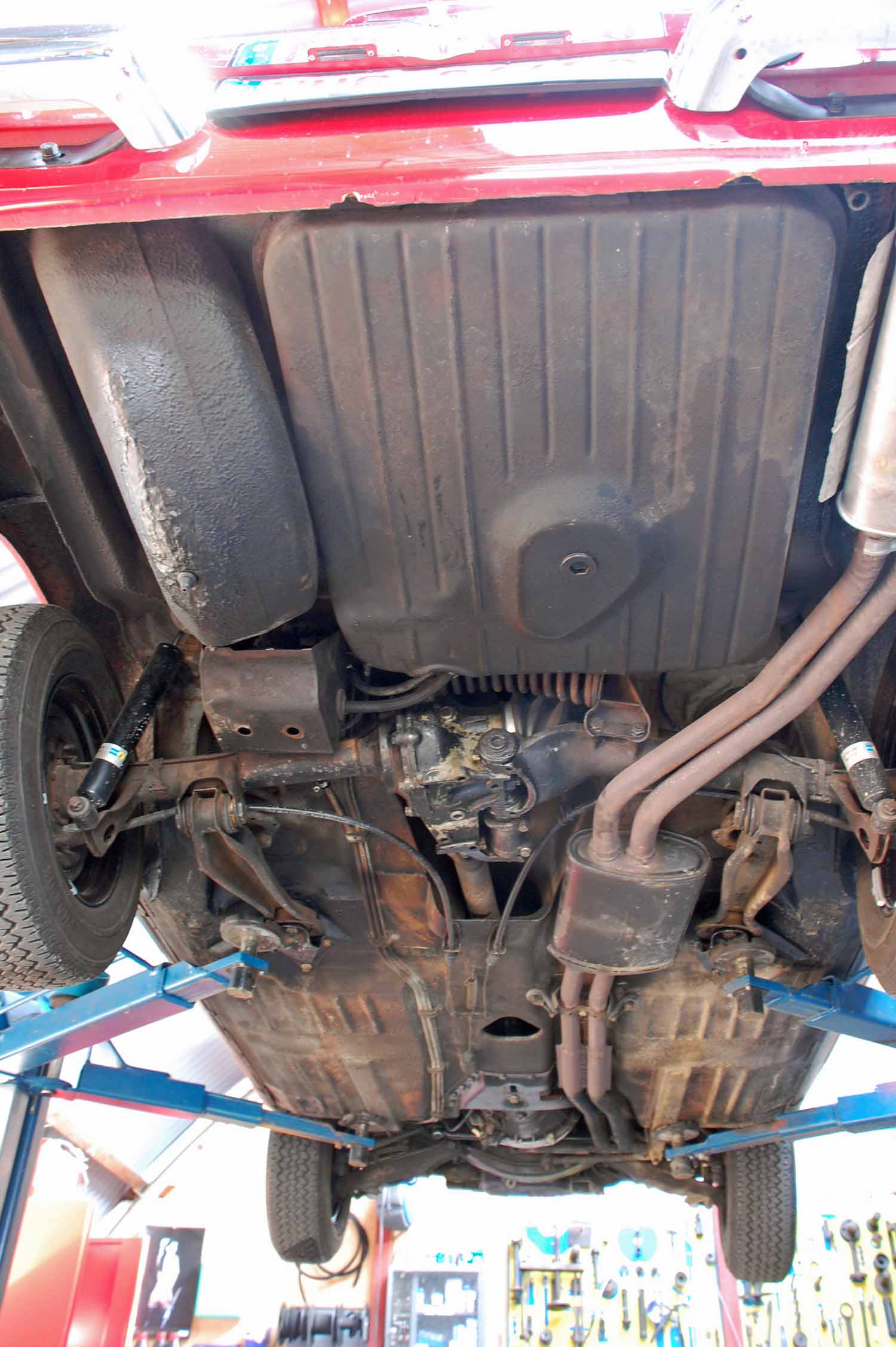 Nach Vergleich der Motornummer mit den Nummern in der Datenkarte, darf von „Matching Numbers“ ausgegangen werden. Lediglich das Getriebe wurde irgendwann einmal getauscht, die Getriebenummer stimmt nicht mehr mit der Datenkarte über ein. Der Motor läuft einwandfrei, hat vollen Öldruck, kürzlich hebe ich mit einem Mercedes-Meister die Zylinderkopfdichtung erneuert, somit ist mechanisch wieder alles in bester Ordnung an diesem Mercedes. An der Hinterachse sind sämtliche Gummis erneuert und der berüchtigte Faltenbalg ist auch von uns getauscht.