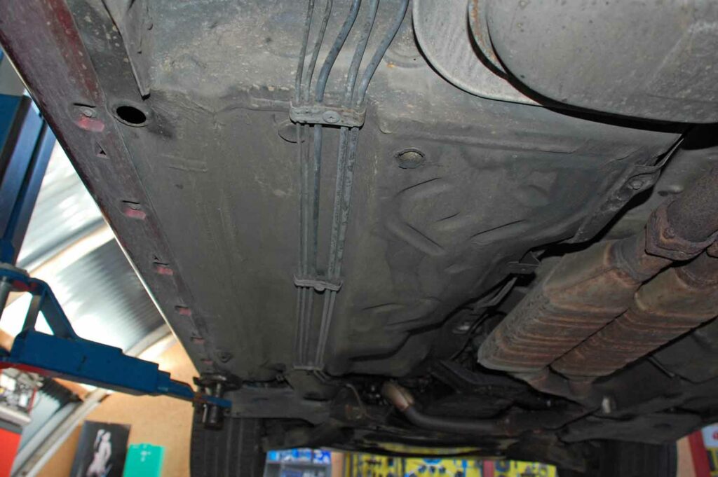 Wie Eingangs erwähnt, hat der Mercedes wahrscheinlich nicht viele salzige Winterstraßen gesehen. Weder die Bodenbleche, noch die empfindlichen Brems- und Kraftstoffleitungen sind von der braunen Pest angegriffen.