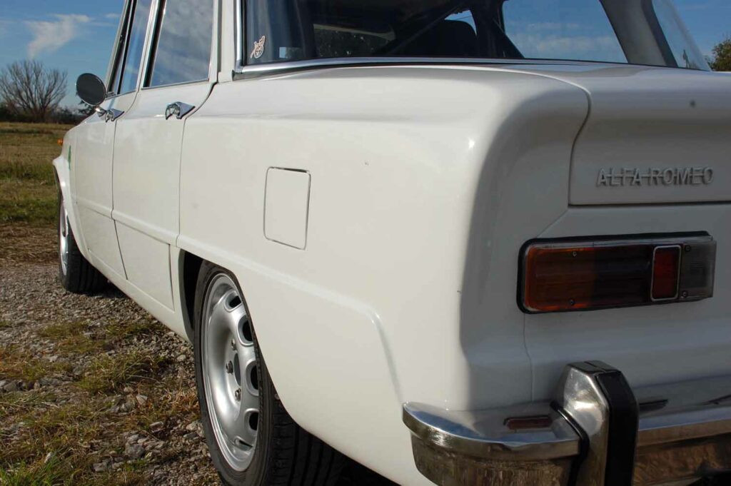 Der Wagen kam 1990 aus Italien nach Deutschland, wo sie nach der Verzollung an den stolzen Besitzer überging. Es waren damals einige kleinere Arbeiten nötig, doch es wurden gleich Nägel mit Köpfen gemacht. Die Giulia wurde komplett zerlegt und neu aufgebaut. So ist der Lack nun auch schon wieder 30 Jahre alt, was man der Bella aber überhaupt nicht ansieht.