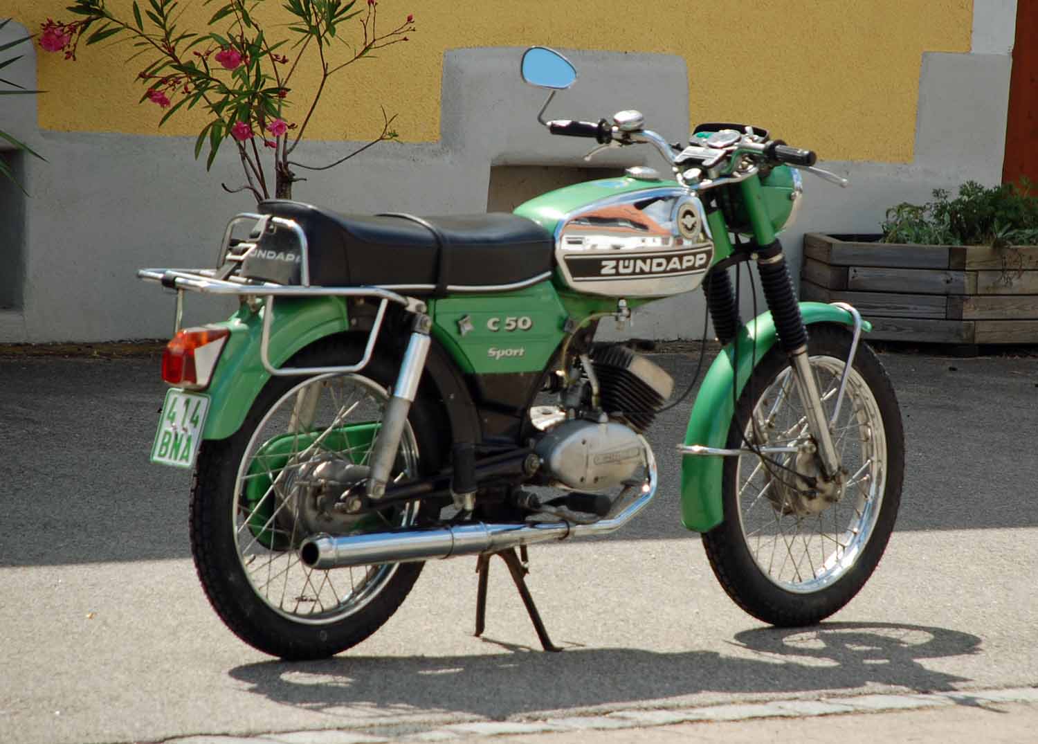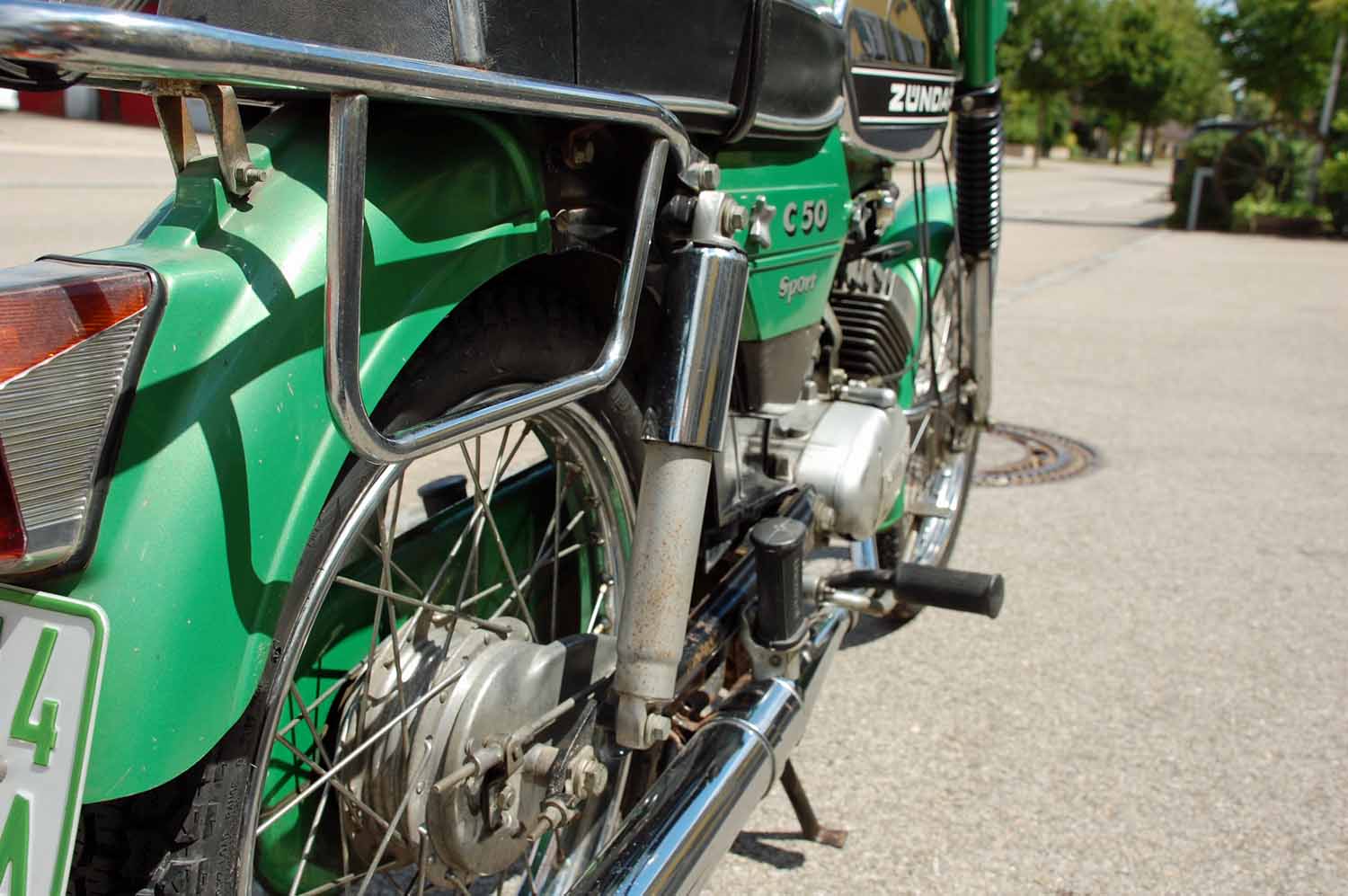 Dieses „Sport“ Modell wurde am 10.05.1976 das erste mal zugelassen. Ins Hause Beuster kam sie dann im Mai 1985. Ich kann mich noch gut daran erinnern, durfte ich doch bei der Übergabe dabei sein, als frisch gebackener Inhaber des Autoführerscheins und unterwegs im Golf I hatte ich die Ehre meinen Vater zur Abholung der „neuen“ Zündapp zu fahren. Die C 50 Sport sollte ab dann nur noch für Sonntägliche Fahrten oder auf die Arbeit bei bestem Wetter dienen. Schließlich war das Vorgänger Modell auch noch da, dass konnte bei schlechtem Wetter aufgebraucht werden. Diese Umstände erklären auch die niedrige Laufleistung von knapp über 11000km.